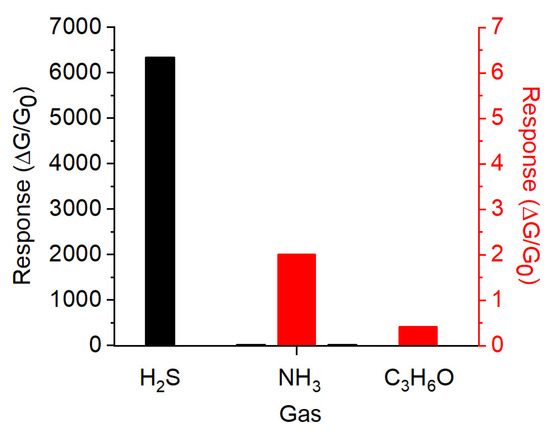 Response of the ZnO towards 20 ppm of H2S, NH3 and C3H6O at 400 °C.