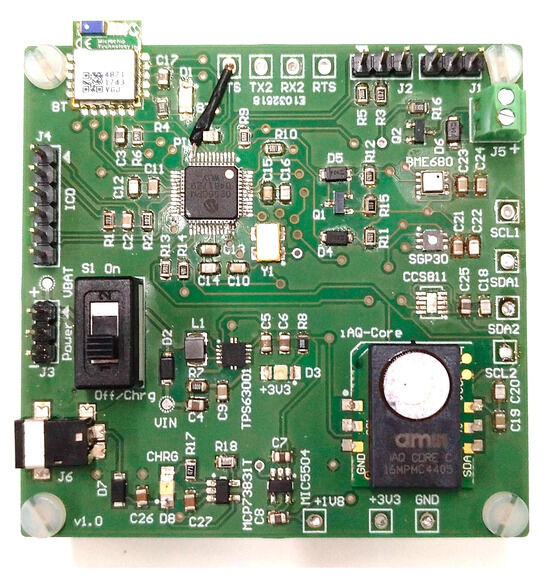 In the last years, an important evolution of gas sensors has occurred from tube-type gas sensor of the 80′s (Figaro and FIS among others) with a size higher than 17 mm diameter and a consumption of hundreds of mW to the latest commercial devices. Nowadays, MEMS based gas sensors (Figaro TGS1800, ams CCS801), Sgx Sensortech can be found in the market with a very low size (3 × 4 mm) and consumption (less than 15 mW). Other interesting sensors for integration in small and personal measurement systems are multisensor arrays with digital communication (via I2C or SPI interface). The main purpose of this work and of the device developed and showed in Figure 1 is to test these devices and analyze the response obtained from the digital sensors.