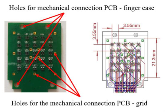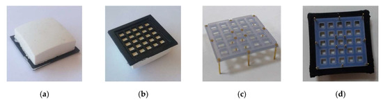 This assembled grid is then bonded to the deformable layer, by using the same glue, by obtaining the final mechanical cap reported in Figure 3d. The rigid pins that come out of the assembled cap are used to align the cells with the optical components on the PCB, thanks to the mechanical holes available on the board (see Figure 1). After the alignment, the same pins are used to mechanically connect the cap and the PCB, by soldering the rigid pins to the bottom side of the board (see Figure 2c).