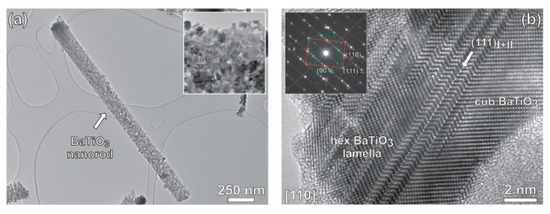 9. Žagar, K.; Rečnik, A.; Sturm, S.; Gajović, A.; Ceh, M. Structural and chemical characterization of BaTiO3 nanorods. Mater. Res. Bull. 2011, 46, 366–371. [Google Scholar] [CrossRef]