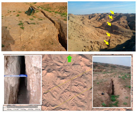 Land surface deformation has occurred in the Azar oil field. Between 2007 and 2011, the region observed sharp decreases in precipitation, but dramatic increases in precipitation occurred in the period between 2011 and 2013. The region’s soil, regarded to be of a weak type, is categorized as sandstone according to the international categorization. Since 2013, some cracks have formed, which despite modifications still persist. Figure 1 shows some typical cracks in this region.