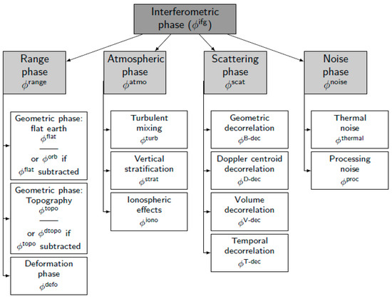 where is the phase of SLC data and is the differential phase between two SLC data. The phase component range, atmosphere scatter, and noise can be further decomposed into some components that are shown in Figure 4.