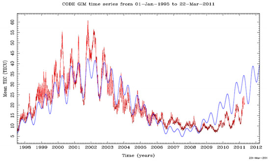 Total Electron Content (TEC) map showing yearly and monthly TEC variations.
