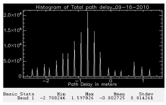 Total path delay due to atmospheric propagation of electromagnetic wave on September 16, 2010.