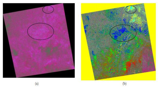 Figure 9a,b shows the differential interferogram generated before and after atmospheric error removal. As seen in the above Figure 9 a,b, the Regions within the black circles are more clearly visible in the DInSAR after correction. This region is hardly seen in the DInSAR before correction. Also, many other regions such as the mountainous regions, plain lands etc. can be clearly seen after applying the correction in the DInSAR. A clear demarcation in the DInSAR before and after correction can be noticed from the above figures.