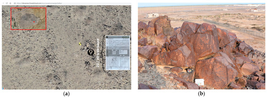 - Web mapping GIS with the integration of the orthophoto and each of the blocks documented in different layer types. This enables analysing the different styles and morphologies of the rock art stone blocks throughout the entire recorded archaeological site (Figure 2a).