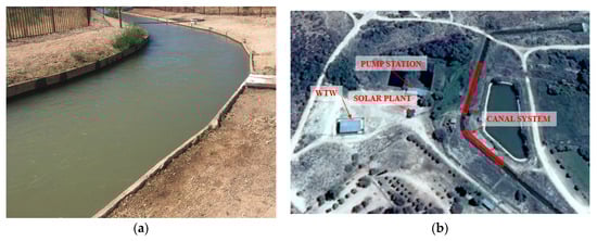 Typical canal testing site. (a) canal bend view (b) canal layout.