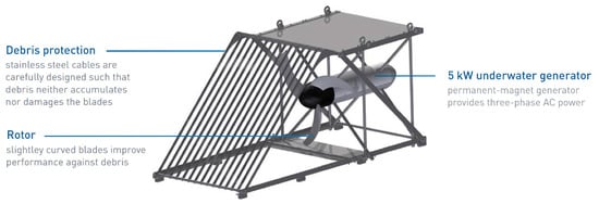 - Smart Hydro Power GmbH (SHP) free stream turbine (Equipped with a 5 kW generator).