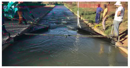 Hydropower is a trusted technology with significant potential in South Africa []. It is a form of clean renewable and sustainable energy making use of the available flow or head in water without consuming or polluting the water itself. Often these systems have long lifespans and high efficiencies with low operating costs []. Hydrokinetic (HK) systems are defined as in-flow turbines which are placed in the flow of water thus harnessing the kinetic energy of flowing water, or hydroelectric energy, to produce electricity []. In SA the Department of Water and Sanitation (DWS) asset management database revealed a total of 47 schemes with a network of more than 6500 km’s of canals. This reveals the extent of available potential for HK installations in canal systems. The canal systems include around 21,286 structures such as tunnels, syphons, weirs, control gates, chutes and drops exist, which also hold a large unexploited hydropower potential.