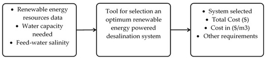 To develop an optimum selection of renewable energy powered desalination system given the renewable energy and water resources of site geographical location the following methodology is followed: