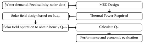 - Performance parameters and cost estimation of the MED-Solar thermal system are calculated.