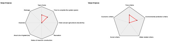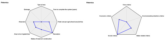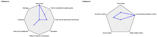 The “social” criterion is related to the possibility of using reservoirs for recreation, reservoirs that can be used for recreation (best) or not (worse). The weight factor for the “social” criteria is 5%.