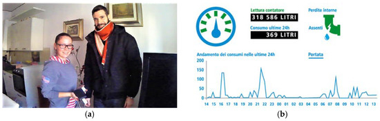 (a) Installation of a data collector in a user’s house of Gorino Ferrarese; (b) Screenshot of the Rilheva platform that allows the visualization of the processed data to the user.