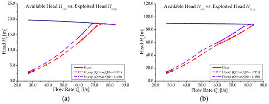 Comparison between available head Ht,av and exploited one Ht,exp for: (a) Scenario 1; (b) Scenario 2.
