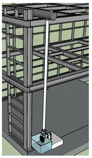 The reference system (Figure 1) consists of a tank, placed at a proper level corresponding to the building height, feeding a drain pipe. A Pelton micro-turbine connected to a 12 V generator is placed at its lower end where a nozzle yields a water jet. The hydroelectric energy produced is stored in a 12 V battery.