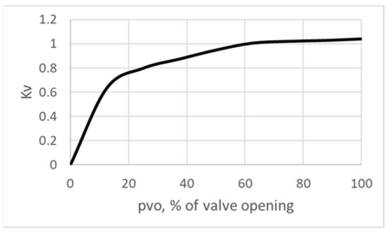As can be noted, Kv does not vary significantly when the opening percentage pvo is in the range 20–100%. Most of its effect is produced when it is about to close (pvo in the range 0–20%), where correspondingly Kv varies of about 80%.