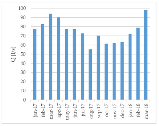 Monthly flow rates Q [l/s] at the “New Aqueduct”, from January 2017 to March 2018.