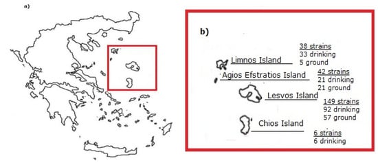 - Papandreou, S.; Pagonopoulou, O.; Vantarakis, A.; Papapetropoulou, M. Multiantibiotic resistance of gram-negative bacteria isolated from drinking water samples in southwest Greece. J. Chemother. 2013, 12, 267–273. [Google Scholar] [CrossRef] [PubMed]