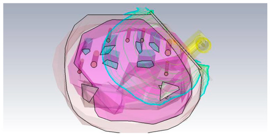 After optimizing the resonators, they were simulated in conjunction with a 3D human body model, which was obtained from IT’IS [4]. The model is part of the ViP 2.x range, which contains 22 different human tissues. Since it is a highly detailed 3D file, which would take too much time to compute, it was first reduced to only the right forearm. Also, the polygons of this model were reduced to speed up the simulations even further. Both the cutting and the reduction of the model were done with the free CAD Software Autodesk Meshmixer.