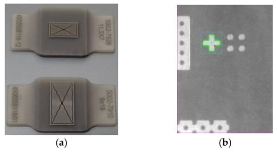 (a) Customized thermodes for bonding the quartz cover and silicon die; (b) Alignment mark on substrate wafer under optimized light settings.