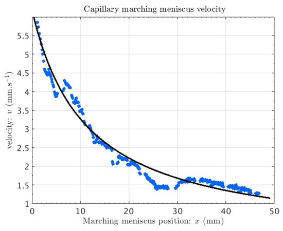 Speed of the advancing liquid meniscus vs. position (test channel).