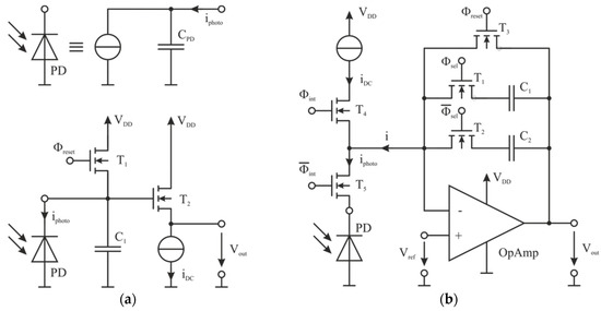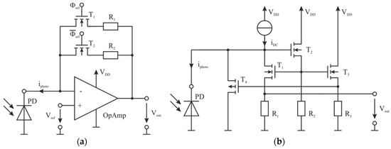 - Kim, Y.; Lee, S. A 72 dBO 11.43 mA novel CMOS regulated cascode TIA for 3.125 Gb/s optical communications. In Proceedings of the IEEE 26th International SOC Conference, Erlangen, Germany, 4–6 September 2013. [Google Scholar]