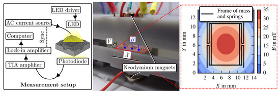 - Hortschitz, W.; Steiner, H.; Stifter, M.; Kainz, A.; Kohl, F.; Siedler, C.; Schalko, J.; Keplinger, F. Novel MOEMS Lorentz Force Transducer for Magnetic Fields. Procedia Eng. 2016, 168, 680–683. [Google Scholar] [CrossRef]