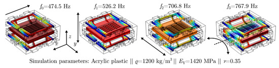 Figure 3 depicts simulation results of the prototype’s eigenfrequencies, where the desired frequency occurs at 706.8 Hz (