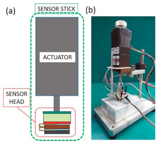 (a) Structure model of sensor stick; (b) Phtograph of sensor stick.