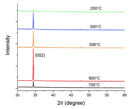 XRD spectra of ZnO NRs grown on SLs pre-annealed at different temperatures.