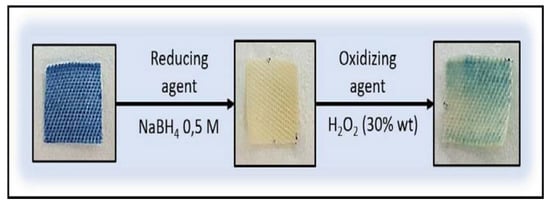 Reversibility assays in the textiles, using as reducing agent NaBH4 0.5 M and as oxidizing agent H2O2 (30% wt).