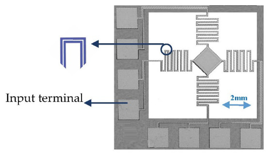 - Wei, Z.; Li, P.; Zhang, X.; Wang, Y.; Hu, F. InGaN/GaN micro mirror with electrostatic comb drive actuation integrated on a patterned silicon-on-insulator wafer. Opt. Express 2018, 26, 7672–7682. [Google Scholar] [CrossRef]
