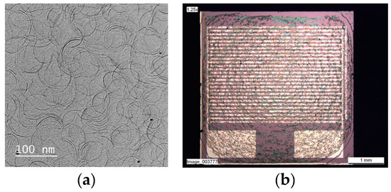 The WO3−x NWs drop casted from a diluted solution on a mesh-coated carbon film presented a homogeneous length (about 100 nm) and shape dispersions (Figure 1a) observed by High-Resolution Transmission Electron Microscope (HR-TEM) JEOL-JEM 3010 (USA). Figure 1b presents the WO3−x NWs homogeneous layer formed on Si-SiO2 substrate. No response was measurable at 25 °C and 50 °C due to the high material resistivity and the high signal/noise ratio. Sensor responses were observed from 75 °C up to 130 °C since post-heating process was carry on at 150 °C.