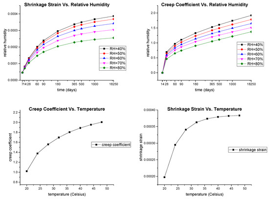 The time-dependent behaviour of concrete has been investigated over a century ago. The gradual development of concrete deformation with time is due to creep and shrinkage. Creep strain is that the strain increases with time under the constant stress. Shrinkage is not relevant to stress and results primarily from the several factors such as loss of water. Creep and shrinkage can cause unduly axial deformation, excessive pre-camber, and loss of prestress. The excessive deflection and excessive shortening are often caused by creep and shrinkage. The unsightly cracking could occur that results in impaired serviceability and durability issues. Environmental factors can largely influence creep and shrinkage. For example, temperature rise increases the deformability of cement paste and accelerates drying [19,20].
