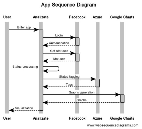 In this section we describe Analízate application development. Users access the application through their Facebook account, so that the application can then collect all their Facebook status updates. These are pre-processed by the application, and then sent to the emotion classifiers that label them. With this information, we proceed to generate the graphics, thus joining everything to create the final visualization. Figure 1 details the interaction between the main components of Analízate.