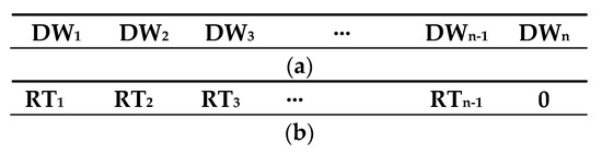 In this point, the datasets {DW}L,T and {RT}L,T. to be used by AI techniques is generated. These datasets are formed by a set of data records in which each record is related to a VJ belonging to {QVJS}L,T, containing the DW and RT times of the VJ. The structure of the records of these sets for a line with n bus stops is showed in Figure 2. In Figure 2a, DWn represents the dwell time at the bus stop n. In Figure 2b, RTn represents nonstop run time of the arc n.