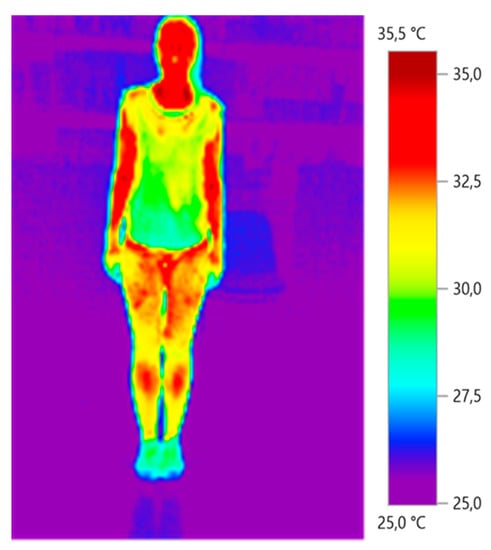 A disadvantage of this method is that the RFID system does not differentiate whether a person actually wears the clothes or only holds them in his or her hand. With the help of a thermal imaging camera, both the skin temperature and the surface temperature of the garment could be determined. These two parameters also theoretically allow the clo-value of the garment worn to be determined [