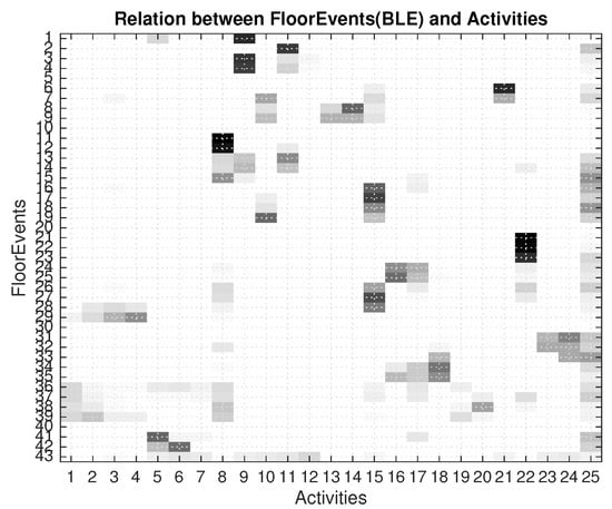 Measurement matrix relating floor events with activities (for seven-days training set).