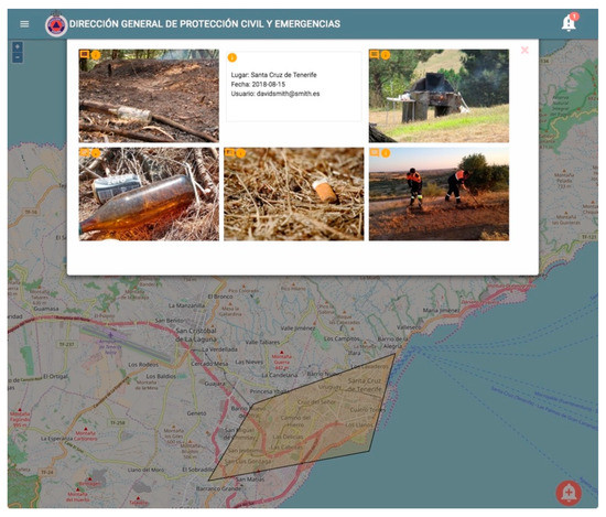 The central system is a map-based web page used by the emergency operators for managing information related to early warnings [17], both official information collected through sensors or other official information providers as well as citizen-generated content. Let’s consider the following scenario. The Spanish Civil Protection has received from the national meteorological agency, a high temperature alert in the province of Santa Cruz de Tenerife in the archipelago of the Canary Islands, an area where wildfires are frequent and that is also overcrowded with tourists. As part of the action plan, it has been decided to ask the population to look for pictures reporting any dangerous situation they witness in the area, such as waste on the ground, illegal campfires and barbeques, cigarette butts, etc. To promote the participation, the citizens are involved in a sort of game: every time they take a picture that the Civil Protection considers useful, they receive 15 points as reward.