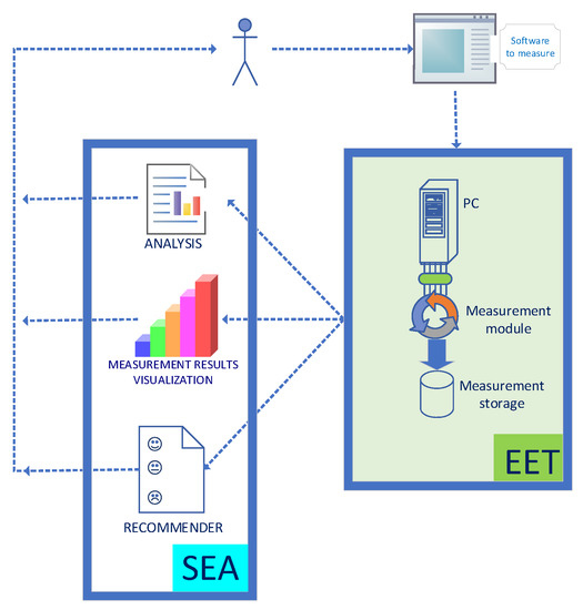 - Mancebo, J.; Arriaga, H.O.; García, F.; Moraga, M.A.; García-Rodríguez de Guzmán, I.; Calero, C. (2018) EET: A device to support the measurement of software consumption. In Proceedings of the 2018 ACM/IEEE 6th International Workshop on Green and Sustainable Software (GREENS’18), Gothenburg, Sweden, 26–27 May 2018. [Google Scholar]