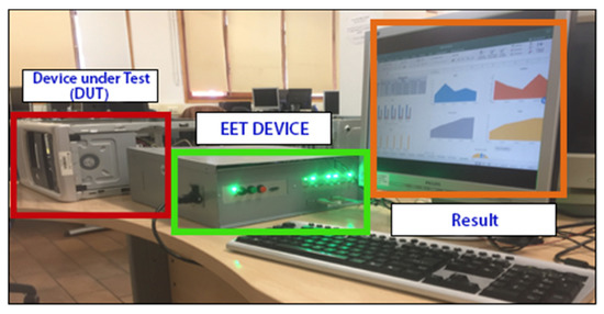 EET is portable and easy to connect to the PC (DUT, device under test) where the software to be measured is executed. It is only necessary to replace the power supply of the DUT with the EET power supply (see Figure 3).
