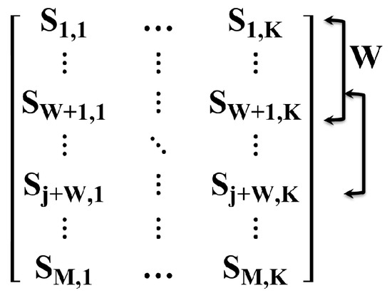 Given K different sensor time series, each of length M, we represent them with a matrix (Figure 3): each column corresponds to the time series of a single sensor, whereas each row corresponds to all sensor values sampled at a given time. Then, we cluster rows into sliding windows [19]: each corresponds to W time samples of all K sensors, with each window sharing samples with the previous one. Therefore, each can be seen as a point cloud, made of W points in the Euclidean space , where the coordinates correspond to the output of the different sensors.