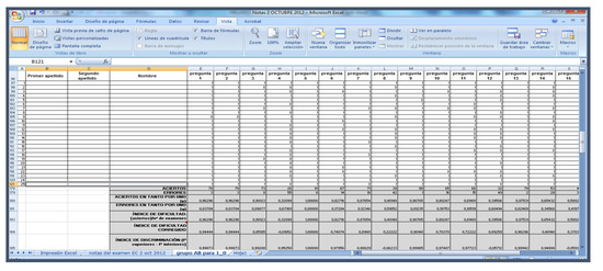 An Excel sheet is designed placing the items and the students involved (Figure 1). Once the exam has been carried out, cells are filled: “1” for correct answers and “0” for wrong answers. The formula for calculating the parameters used to verify the exam (ID, IDc, …) is placed at the end.