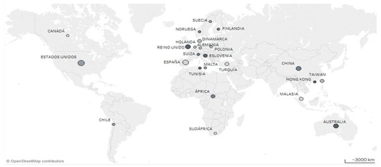 Geographic location and frequency of publication on the research topic. Own elaboration.
