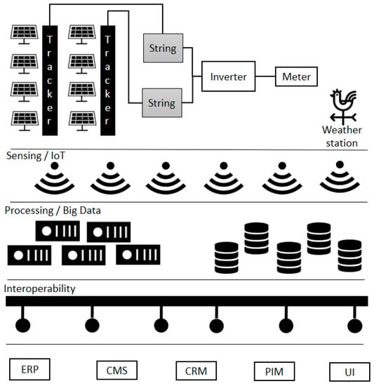 Usually, photovoltaic systems operate continuously and through remote supervision to ensure its operation and maintenance planning, early supervision and maintenance tasks. For this purpose, data collection systems are usually deployed in the plants to gather all the generated data by the photovoltaic elements. Finally, all the generated data are sent to a remote monitoring center. Visualization tools, mainly web or desktop interfaces, are developed to allow operators the visualization of the data though graph generation and data statistics. Related to this, several state-of-the-art solutions can be found: Green Power Monitor [], Heliostat [], Solar Edge [], SenNet Solar [] or Webdom [], among others. They are mainly closed and proprietary platforms that required: (1) the installation and deployment of specific sensors and data collectors in the plant, and (2) the use of a specific visualization tool that sometimes do not match the necessary requirements for the plant operation. Furthermore, these platforms usually have analytical processes to define both performance indicators and alarms, which are very useful to the plant operation but lacking advanced monitoring capabilities. In this context, it is especially important the availability of monitoring tools allowing advanced monitoring techniques and intelligent analysis detecting and preventing failures in a fully automated way [].