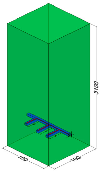 Simple subsurface galleries distribution is considered: principal drift of 25 m2 of squared section, 80 m length, and three cross cuts of 30 m, 30 m and 25 m length, equal section than principal drift. Underground red is placed to 3100 m depth respect to ground surface. Rock volume involves a squared prism of 3100 m height, and 100 m side. It’s considered a blowing ventilation system with 0.75 m2 blowing section. Two physical domains have been studied, such as Figure 1 and Figure 2: