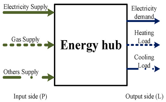 An energy hub can be regarded as an input-output unit model integrating energy conversion, energy transport, energy storage and load dissipation, see Figure 1 [1].