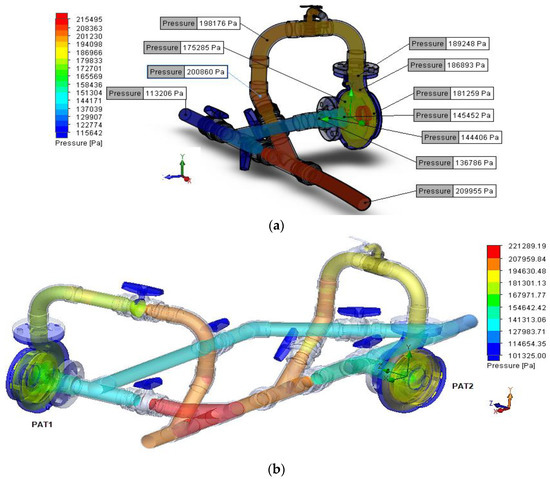 Pressure contours: (a) single PAT; (b) PATs in parallel.