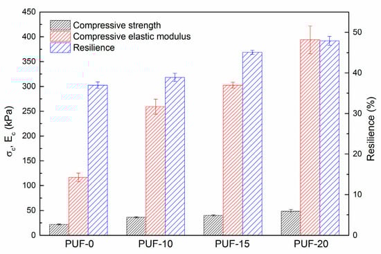 Compressive strength, compressive modulus and resilience values of polyurethane foams.