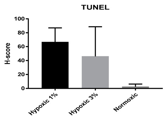 Comparative data of TUNEL-positive cell number in hypoxic (1% and 3%) and normoxic groups.